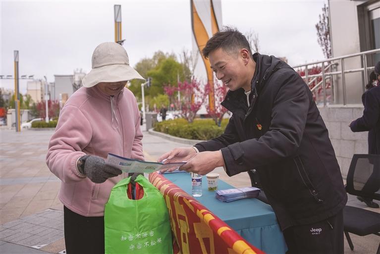 工作人员正在宣讲“非法集资”。记者 阿旺尼玛 摄