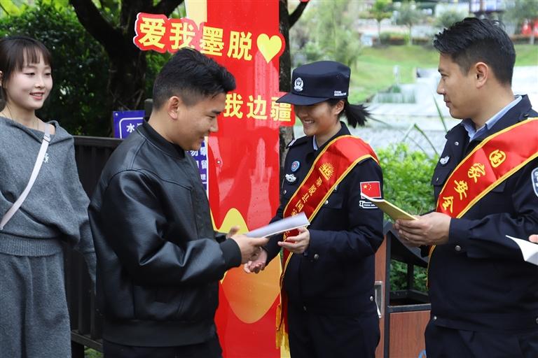 墨脱边境管理大队民警向居民发放国家安全相关宣传手册。通讯员 李欣雅 摄