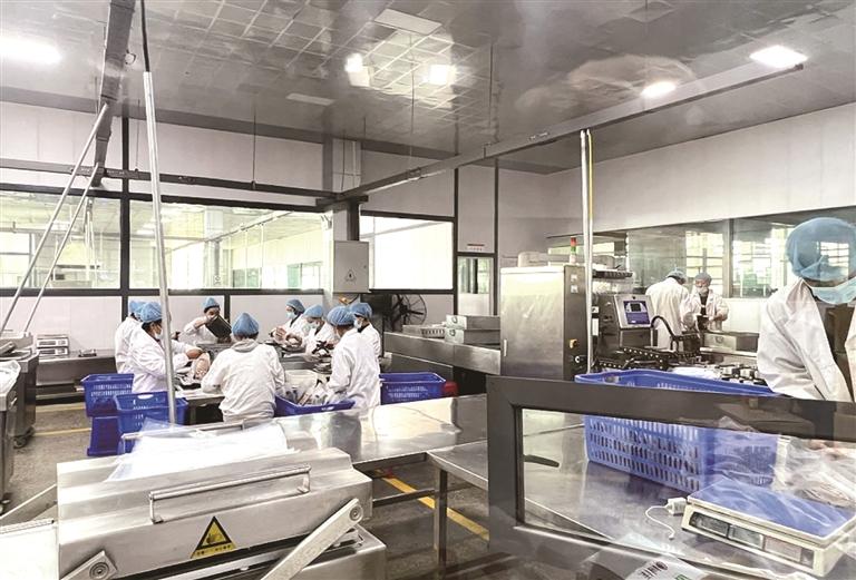 工人正在牦牛肉干生产厂房作业。图由自治区税务局提供
