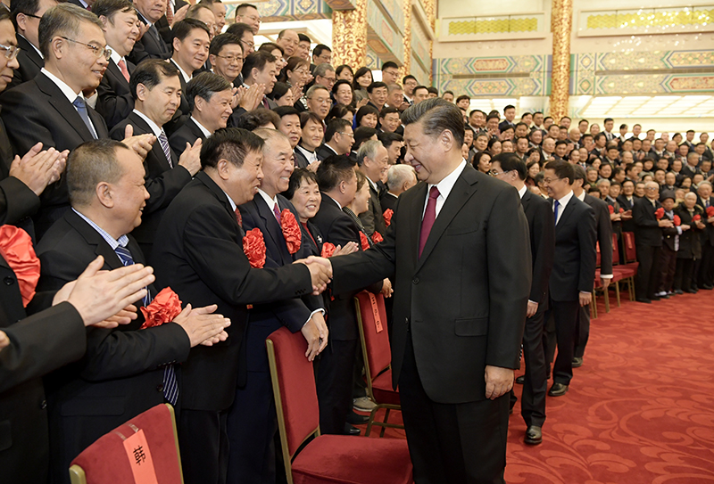 上午10时,习近平等来到人民大会堂金色大厅,全场响起热烈掌声。习近平等同代表们亲切握手,不时交谈,并同大家合影留念。