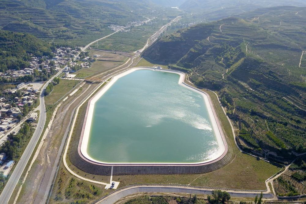 这是2021年9月8日在甘肃省天水市拍摄的引洮供水工程杨家湾调蓄水池(无人机照片)。新华社记者 范培珅 摄