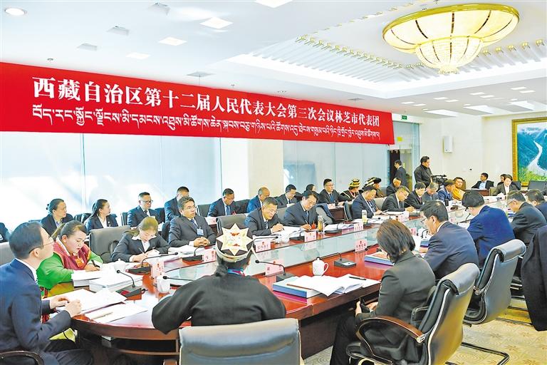 林芝市代表团审议《政府工作报告》。 西藏日报记者 次仁平措 摄