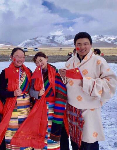 今天,我们是羌塘草原最美的风景,今天,我们用最美的笑容,表达对祖国母亲的无限热爱与祝福。我爱我的祖国,祖国万岁,扎西德勒!