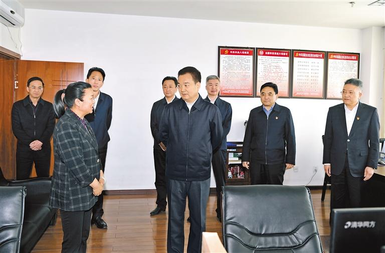 王君正深入基层一线部门看望慰问干部职工,与大家亲切交谈。在环境影响评价与排放管理处、生态环境保护督察整改办、生态环境保护展厅,详细了解环评领域放管服、中央环保督察整改落实、生态安全屏障建设规划与重大工程建设进展、绿色发展等工作情况。